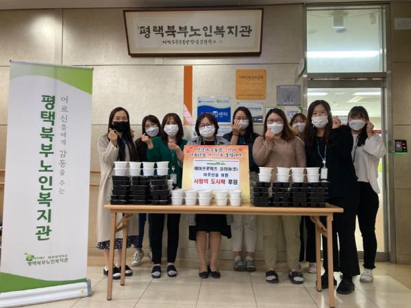 평택복지재단 산하 평택북부노인복지관에서는 10월 12일(월) 에어프로덕츠코리아(주)(대표 김교영) 후원으로 노인맞춤돌봄서비스 대상 51명의 어르신들에게 ‘행복한나눔밥상’ 도시락을 전달하였다.