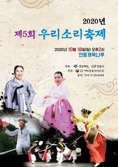 경상북도와 안동시가 주최하고 (사)국악로문화보존회가 주관하는‘2020년 제5회 우리소리축제’가 10월 18일(일) 오후 2시 안동댐 개목나루에서 개최된다.