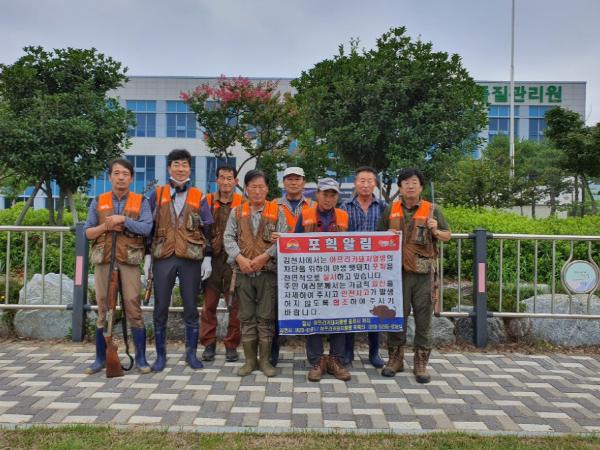 김천시에서 운영하고 있는 상시포획단은 총기소지면허와 수렵면허가 있는 모범엽사 총42명으로(기동포획단 6명, 상시포획단 36명) 4개 권역으로 나누어 포획활동을 하고 있다. 포획에 앞서 포획방향 및 안전사고 예방교육을 실시하고 포획활동 과정에서 발생할 수 있는 각종 총기 안전사고예방, 인가 및 가축사육 지역 주변 발포금지, 유해야생동물 상황별 행동요령과 야생동물 밀렵, 밀거래 단속 등의 내용을 숙지한 후 포획활동에 들어간다.