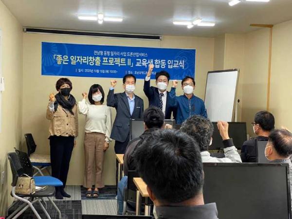 드론서비스 좋은 일자리창출 프로젝트는 전라남도 지역특화형 동행일자리 공모사업으로 방제, 촬영, 정비, 교육 등 다양한 분야에서 드론을 활용할 수 있는 취·창업교육이며, 영광군이 주관하고 (사)전남드론교육산업진흥원에서 수행하게 된다.