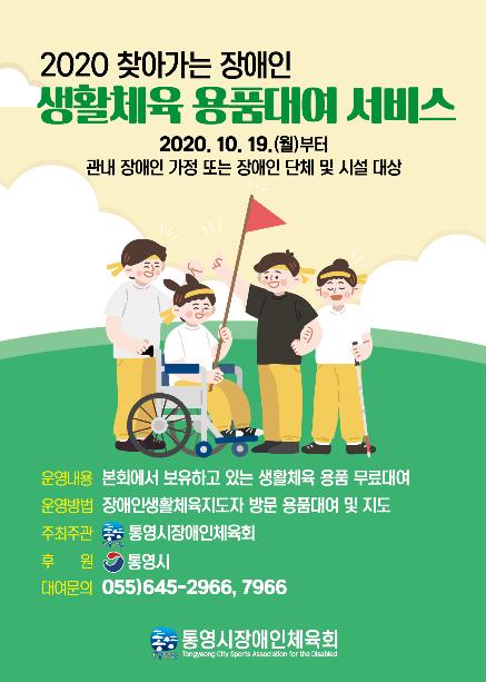 통영시장애인체육회는 코로나19 상황이 장기화됨에 따라 무료하고 피로한 일상을 보내고 있는 관내 장애인을 위해 스스로 건강관리를 할 수 있도록 체육용품을 무료로 대여해 주는?찾아가는 장애인 생활체육 용품(스포츠박스) 대여 서비스’사업을 추진한다.