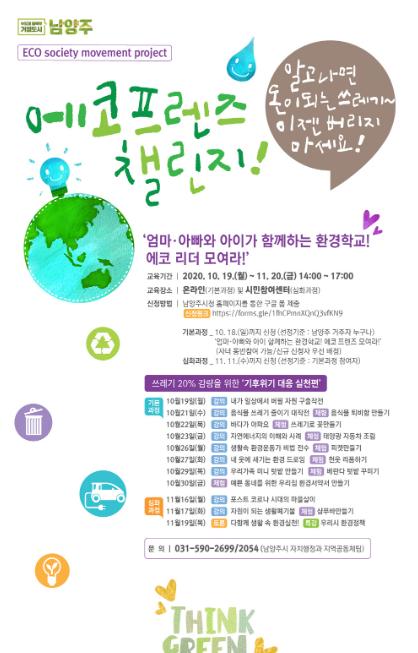 남양주시가 오는 19일부터 시민들이 가족과 함께 참여할 수 있는‘기후위기 대응 실천편’교육을 진행한다.