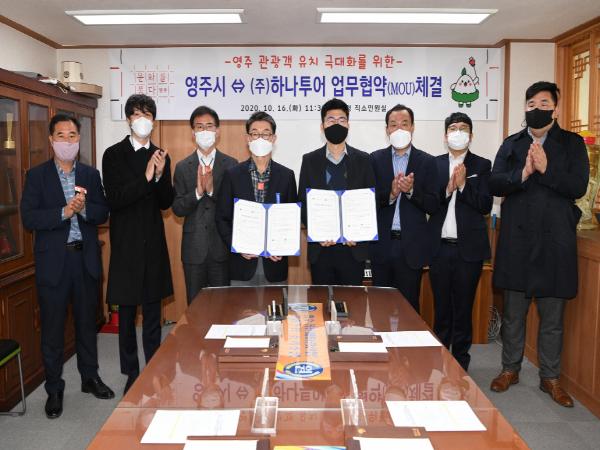 영주시는 지난 16일 시장실에서 장욱현 영주시장을 비롯해 하나투어 김석헌 국내여행 총괄 본부장, 장일우 영남지역본부장 등 10명이 참석한 가운데 ㈜하나투어와 지역관광 활성화를 위한 업무협약을 체결했다.