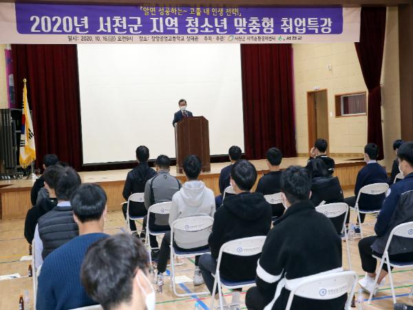 서천군은 서천군지역순환경제센터와 함께 16일 장항공업고등학교 학생과 교사 등 50여 명이 참석한 가운데 ‘지역 청소년 맞춤형 취업특강’을 개최했다.