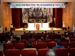 충북 괴산군이 15일 괴산문화예술회관에서 군 탄생 607주년을 기념하는 제24회 괴산군민의 날 기념식을 개최했다.