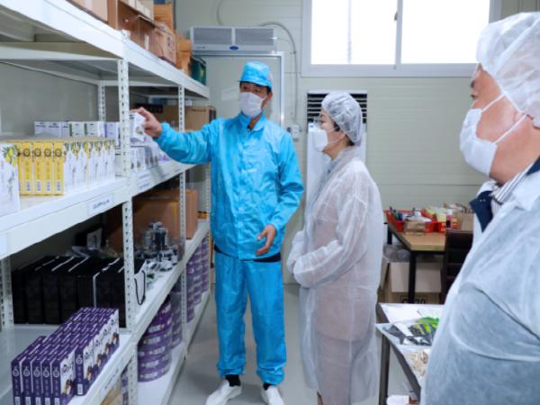 이날 방문한 안성엄마손꾸러미영농조합법인(대표 김명수)은 2017년 농업기술센터 녹색농업대학 농식품가공과 교육을 이수한 농업인 5인으로 구성된 법인회사로, 올해 소규모 창업기술지원을 받아 모과배도라지농축액, IQ농축액을 제품화 했다.