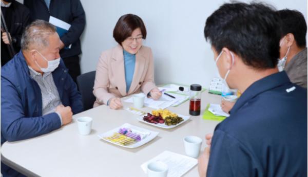 가공식품 사업장을 방문한 김보라 시장은 가공제품이 생산되는 과정을 일일이 둘러보고 농업인들의 애로사항을 청취했다.