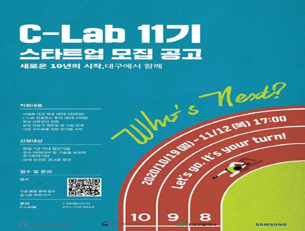 대구시와 대구창조경제혁신센터는 오는 19일부터 11월 12일까지 C-Lab 액셀러레이팅 프로그램 11기 참가기업을 모집한다고 밝혔다.