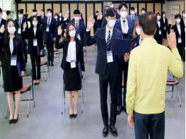 문준희 군수는 "코로나19로 인해 여러분들의 가족을 이 자리에 초청하지 못해 아쉽다“고 전하면서 ▲열정을 가진 공직자 ▲청렴한 공직자 ▲당당한 공직자가 되어 줄 것을 당부하며 신규공무원들의 앞날에 격려와 응원을 보냈다.