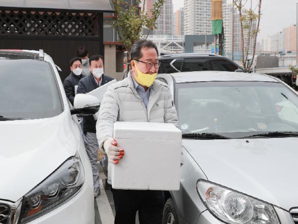 16일 다산행정복지센터를 방문한 조 시장은 시민들이 수거한 아이스팩을 직접 접수받고 종량제봉투로 교환해 주며 아이스팩 수거 사업의 중요성에 대해 설명했다.