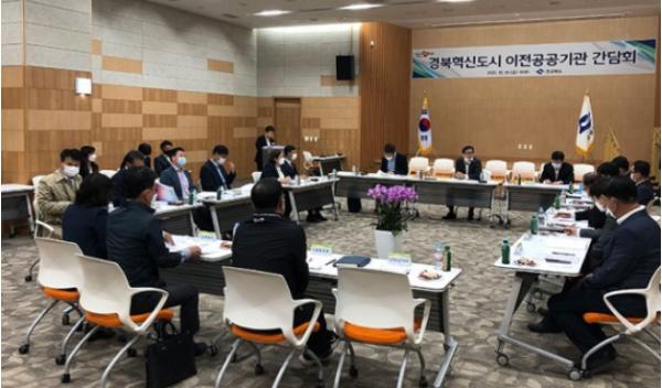 경상북도는 16일 경북김천혁신도시 산학연유치지원센터에서 경북혁신 도시 이전공공기관들과 상생협력 방안을 모색하는 간담회를 가졌다.