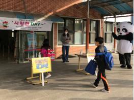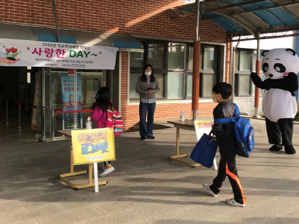 코로나19로 인해 이번 주는 1, 3학년이 등교하는 주간으로 ‘학교폭력 로그아웃!’,‘친구야 사랑한DAY~’등 응원 메시지 피켓을 들고 등교하는 친구들에게 친구사랑 및 학교폭력으로부터의 안전 생활 실천 의지를 심어줬다.