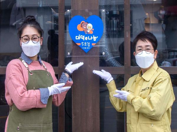 대전 대덕구가 지난 16일 신탄진동에 위치한 ‘커피를福堂’카페를 ‘대덕e나눔’5호점으로 지정하고 나눔문화 확산을 통한 지역경제 살리기에 나섰다.