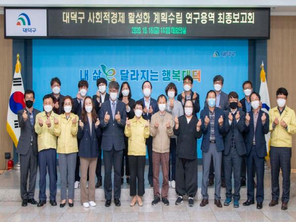 박정현 대덕구청장 및 민간전문가, 사회적경제기업 관계자 등이 참여한 가운데 지역의 사회적경제 발전을 위한 의견을 나누는 시간을 가졌으며 연구 용역 결과, 대덕구 사회적경제의 미래 전략은 그린뉴딜·휴먼뉴딜, 혁신형 공공구매, 거버넌스형 통합지원체계 구축이 될 전망이다.