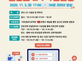 ‘서초구 방배교육지원센터’에서 주최한 이번 『온라인 입시설명회』 는 오는 11월 3일에 서초구립 양재도서관에서 오후5시부터 ‘서초혼공프로젝트’채널 유튜브를 통해 생방송으로 진행되며 방송 중 강사진과 참여자간의 양방향 질의?응답도 이뤄질 예정이다. 또한 AI로봇을 활용한 비대면 체온체크 등 철저한 방역지침하에 선착순 30명 제한으로 현장참여도 실시한다.