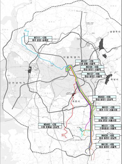 화성 동탄, 성남 분당에서 서울로 운행하는 6개 광역급행버스 노선은 9월 14일부터 증차운행을 시작하였으며, 수원 영통·호매실, 용인 수지에서 서울로 운행하는 4개 광역급행버스 노선은 10월부터 증차운행을 시작하였다.
