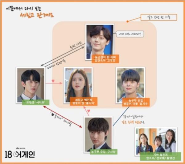 JTBC ‘18 어게인’의 이쯤에서 다시 보는 세림고 관계도가 공개돼 관심을 높인다. 알고 보니 더욱 흥미로운 인물들의 관계가 앞으로의 전개를 더욱 기대하게 한다.