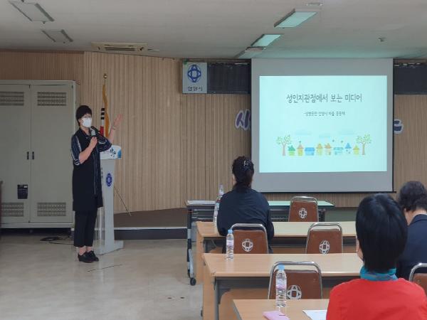 조회정 강사는 일상에서 드러나고 있는 성 차별 관행 사례를 언급하며, 성인지를 위한 기본지식과 성인지 관점에서 보는 미디어를 비평하며 교육을 진행했다. 또 성 관련 고정관념에 대해 토론하는 시간도 가졌다.