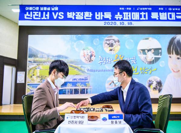 이와 함께 신진서 9단과 장충남 남해군수, 박영훈 9단과 윤정근 군의원 간 특별대국도 이어졌다.