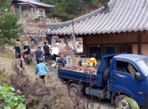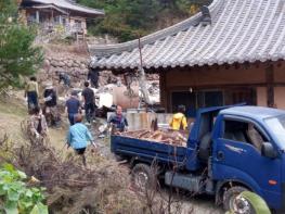 하동군 청암면사무소 직원들이 최근 화재로 소실된 청학동 한 서당의 신속한 복구를 위한 일손 지원에 나섰다.