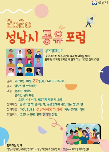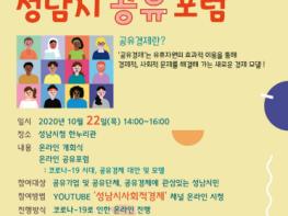 성남시는 코로나19로 위축된 일상생활 속 공유경제 활성화 방안을 모색하기 위해 오는 10월 22일 오후 2시~4시 온라인 포럼을 연다.