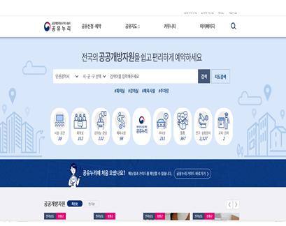 이 서비스는 지난 3월에 오픈하여 10월 12일 현재 전국적으로 99,983개의 자원이 등록되어 있으며, 공공기관이 보유하거나 운영 중인 시설·공간, 회의실, 강의실, 강당, 체육시설, 주차장, 물품 및 교육·강좌까지 다양한 자원을 개방하고 있다.