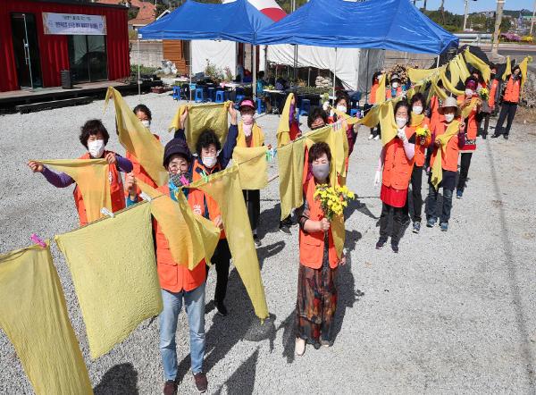 산청군자원봉사센터는 19일 자원봉사자들이 약초재배단지(정광들)에서 감국을 이용해 ‘천연염색 손수건’을 만들었다고 밝혔다.