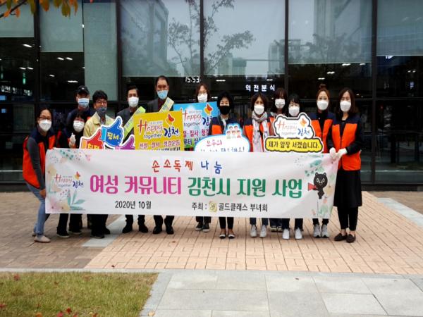 김천시 율곡동에서는 10월 16일(금) 오후4시 KTX김천역 앞에서 골드클래스 부녀회 주관으로 KTX이용객들과 대기중인 택시에 『손소독제 나눔행사』를 개최했다.