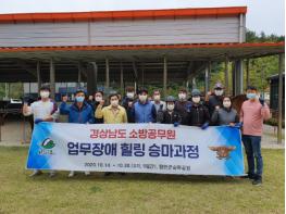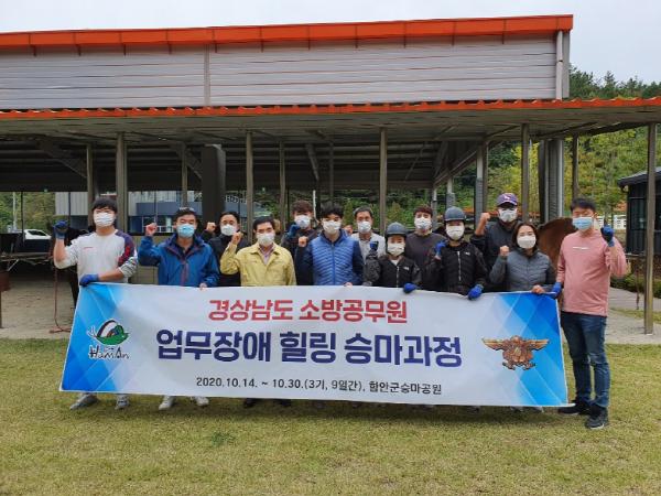 함안군이 경남 소방공무원들을 대상으로 각종 재난현장에서 업무상 겪게 되는 심리적 충격과 이로 인한 트라우마를 치유하고자 지난 14일부터 16일까지 군 승마공원에서 힐링 승마 교육을 실시했다.