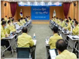 김돈곤 군수와 실과장, 주무팀장 등이 함께한 보고회에서는 부서별 역점사업 관리상황 보고, 효율적 운영방안 강구 순으로 진행됐다.