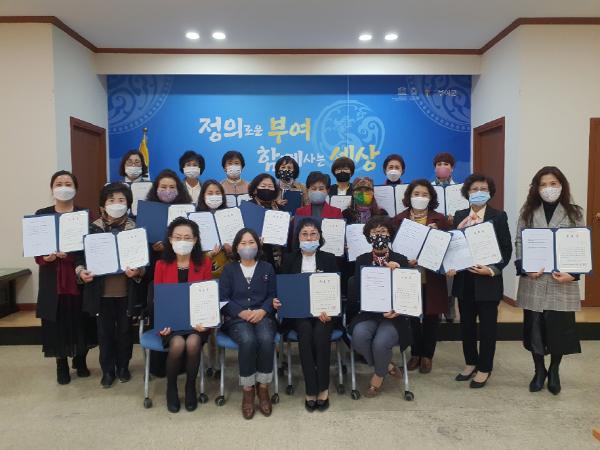 박성옥 부여군여성단체협의회장은 “바쁜 일상 속에서 적극적으로 교육에 참여해 주신 회원들께 감사하며, 이 교육을 계기로 성평등 시민인식을 함양하고 성인지 감수성을 겸비한 여성리더로 여성친화도시 사업의 파트너로써 역할을 기대한다”며 수료증을 전했다.