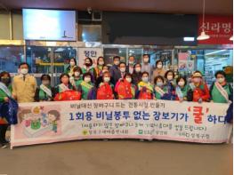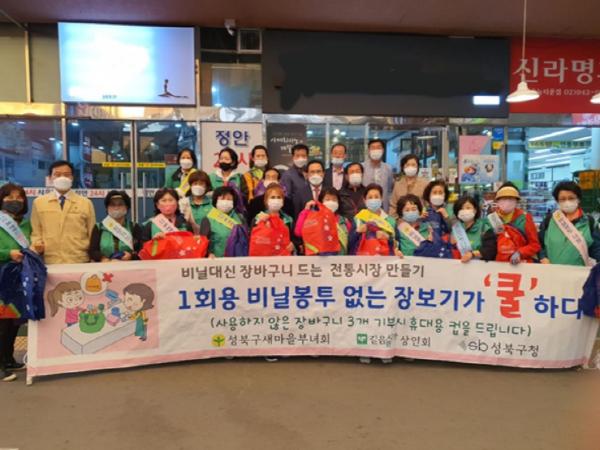 성북구 새마을부녀회는 길음시장 등 전통시장 일대에서 시민과 상인을 대상으로 1회용품 사용자제 및 장바구니 사용 권장 캠페인을 실시하고 있다.