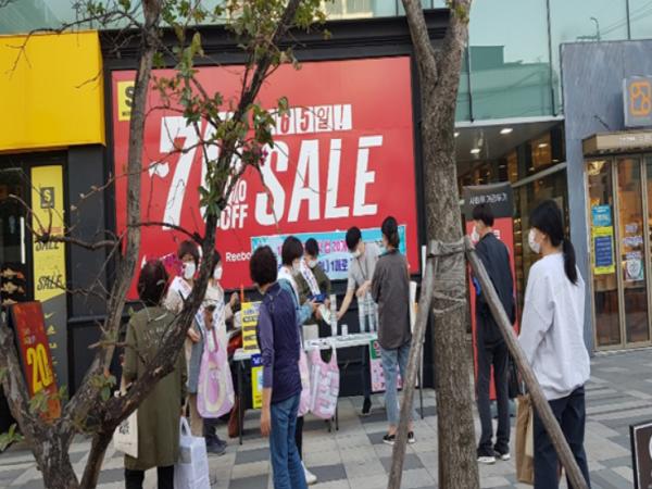 부산시 금정구는 깨끗한 거리환경 조성을 위해 지난 14일 1회용 플라스틱 컵 20개를 가져오면 종량제봉투(10리터) 1개를 교환해 주는 ‘반짝 캠페인’을 NC백화점 앞에서 실시했다.