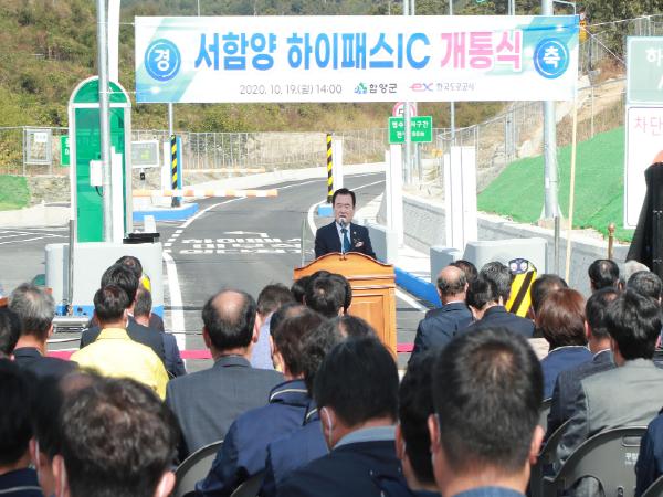 이날 개통식에는 서춘수 함양군수를 비롯한 황태진 함양군의장, 함양군의원, 김주성 한국도로공사 광주전남본부장, 기관단체장, 주민 등 200여 명이 참석한 가운데 경과보고, 축사, 테이프 커팅 순으로 진행됐으며, 코로나 19 사회적 거리두기 지침에 따라 체온 측정, 손 소독, 거리 유지 등을 철저히 준수하였다.
