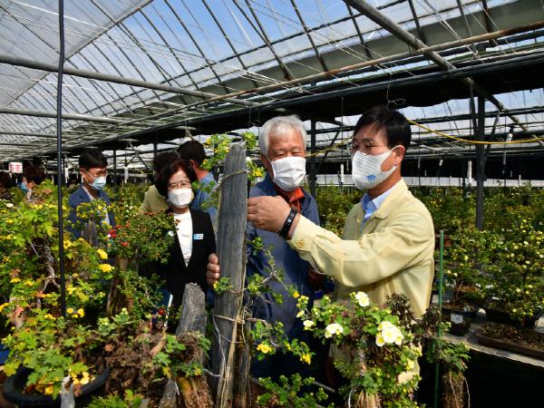 변광용 거제시장은 19일 농업개발원을 방문해 거제섬꽃축제 가을꽃전시의 성공적이고 안전한 개최를 위해 노력하고 있는 거제 국화분재연구회 및 직원들을 격려하고 준비상황을 점검했다.