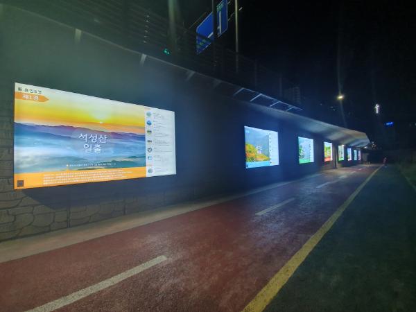 언동1교 하부 36m 구간엔 한국사진작가협회가 추천한 사진작품 6점(가로2.7m, 세로 1.2m)을 게시했다.