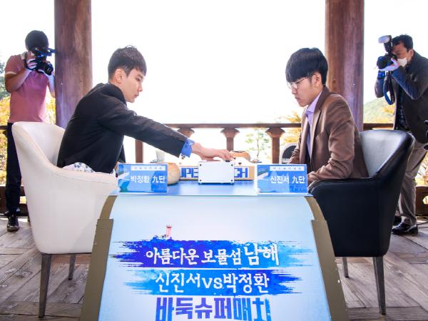 세계랭킹 1·3위(국내 랭킹 1·2위)간 대결로 관심을 모으고 있는 ‘신진서 VS 박정환 바둑 슈퍼매치’가 19일 오후 이순신 순국공원 관음루에서 열린 제1국을 시작으로 본격적인 막을 올렸다.
