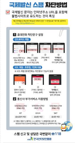 또한, 이용자는 이동통신사의 국제전화 수신거부 서비스에 무료로 가입하고, 휴대전화 차단문구(국제발신, 국외발신)를 설정하는 방법 등을 통해 사전에 스팸문자를 차단할 수 있다.