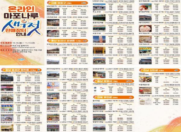 마포구는 신종 코로나바이러스 감염증(코로나19) 확산 방지를 위해 구 대표축제이자 전통포구문화 재현축제인 ‘2020 마포나루 새우젓축제’를 취소했음에도 불구, 김장철을 앞두고 새우젓 구매를 희망하는 시민들의 요청이 쇄도하자 ‘온라인 마포나루 새우젓 판매장터’를 운영하기로 결정했다.