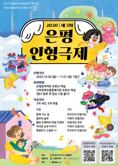 은평구 은평문화재단은 서부장애인종합복지관과 공동주관하여 「온라인 은평 인형극제」를 개최한다. 2016년부터 시작되어 올해로 5회를 맞는 ‘은평 인형극제’는 은평문화예술회관에서 지역 아동들을 만나왔으나, 올해에는 사회적 거리두기를 유지하고 지역주민의 안전을 확보하기 위해 온라인으로 진행된다.