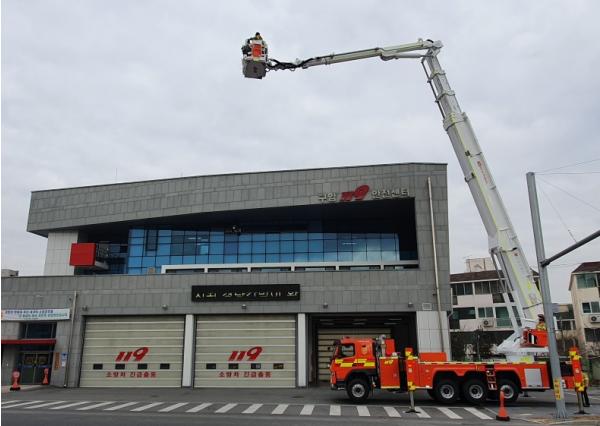 이에 대전소방본부는 이날 지난 해 도입된 70m 굴절사다리차를 이용한 초고층건축물 화재진압과 인명구조 훈련을 실시하고 이달 도입된 재난현장회복차를 시범 운용했다.