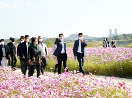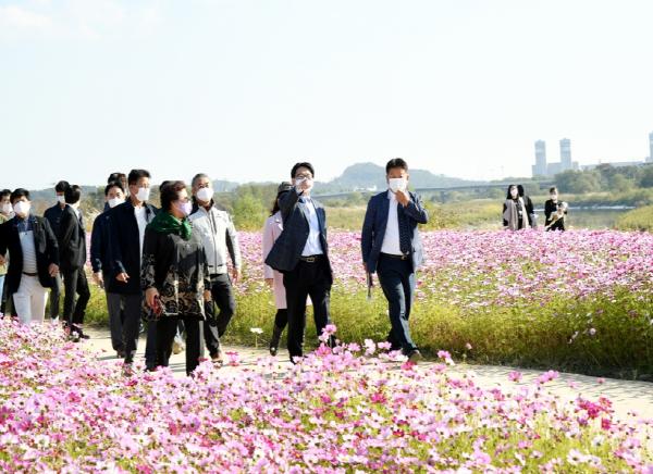 이날 최종환 파주시장을 비롯한 박정 국회의원, 도의원, 시의원 등이 함께 코스모스와 국화꽃이 만개한 문산노을길 꽃밭을 찾았다.