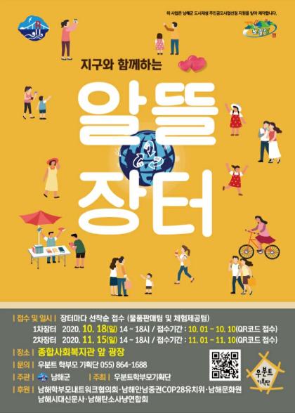 포스터 QR코드 사전접수로 진행된 이번 행사에는 남해군 학부모 등 알뜰나눔 장터 참가 희망자 16개팀이 참석을 하였으며, 생활용품 및 의류, 중고책 등 안쓰는 물건을 나누는 나눔장터로 진행됐다.