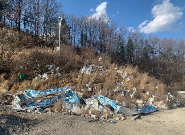 사과의 착색을 돕기 위해 사용되는 ‘과수용 반사필름’은 투명필름에 반사 코팅돼 재활용하기 어렵고 제때 수거하지 않으면 농경지 주변에 방치되거나 바람에 날려 경관훼손의 우려가 있다.