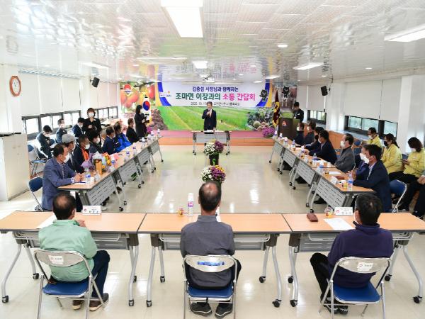 김천시는 10월 19일 조마면사무소 2층 회의실에서 19개 마을이장들과 함께 시정발전을 위한 현장의 목소리를 듣고자 소통 간담회를 개최했다.