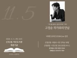 신곡2동은 작은도서관은 오는 11월 5일 작가와의 비대면 만남을 개최한다. 이번 강연회는 신곡2동과 작은도서관 소속 독서동아리‘동행’이 함께 주최하였으며, 민관이 함께 기획·준비하였다는 데에 큰 의의가 있다. ‘동행’은 관내 성인 회원 12명으로 구성되어 월 2회 운영하고 있는 주민 독서토론 동아리이다.