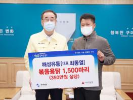 구미시에서는 10월 20일 인동동 소재 육계 가공, 유통업체인 해성유통(대표 최동열)에서 볶음용닭 1,500마리(350만원상당)를 기탁하였다.
