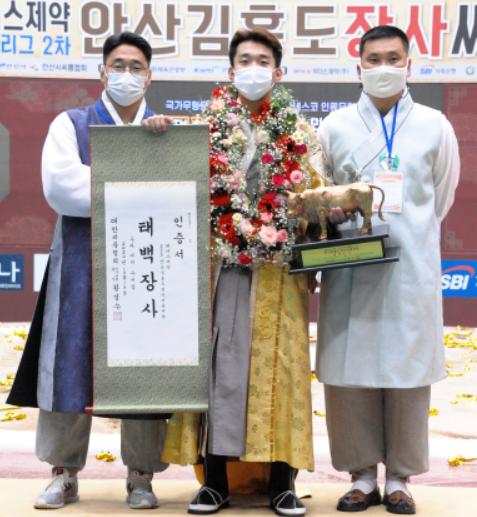 지난 2015년 인제대학교를 졸업한 성현우는 연수구청씨름단 입단 3년차인 2018년 설날장사씨름대회에서 생애 첫 태백장사에 오른 이후 2년여만에 다시 꽃가마의 주인공이 됐다.