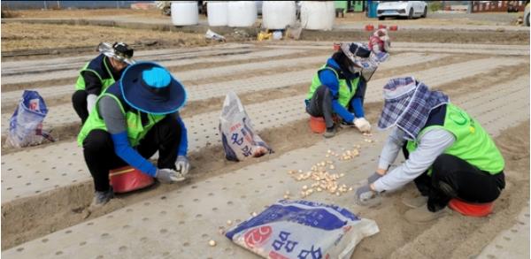 이번 일손 돕기는 코로나19 장기화와 근로자 확보에 어려움을 겪는 가운데 가을철 농번기 지역 농가를 찾아 마늘 파종작업을 돕고 작으나마 부족한 일손에 힘을 보탰다.