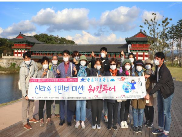 ‘신라속 1만보 미션 워킹투어’ 는 경주시 문화유적 월성 지구 일대를 문화해설사와 함께 약 1만보 정도를 걸으며 문화재와 주변 환경의 모니터링 활동도 함께 진행하는 프로그램이다.